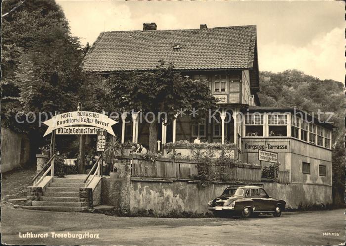 72047800 alte Postkarte Treseburg Harz Hotel Burgstieg postalisch gelaufen Erhaltung siehe scans KatCode: 11110015085340