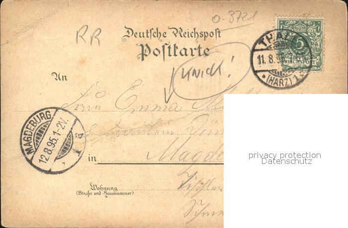 42436060 alte Postkarte Treseburg Harz Hotel Forelle Pfeildenkmal Wilhelmsblick postalisch gelaufen Erhaltung siehe scans KatCode: 11110015085340