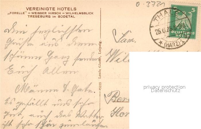 43498599 alte Postkarte Treseburg Harz im Bodetal postalisch gelaufen Erhaltung siehe scans [LiesaD40] KatCode: 11110015085340