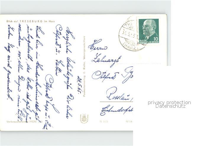 72135421 alte Postkarte Treseburg Harz Ortsblick postalisch gelaufen Erhaltung siehe scans KatCode: 11110015085340