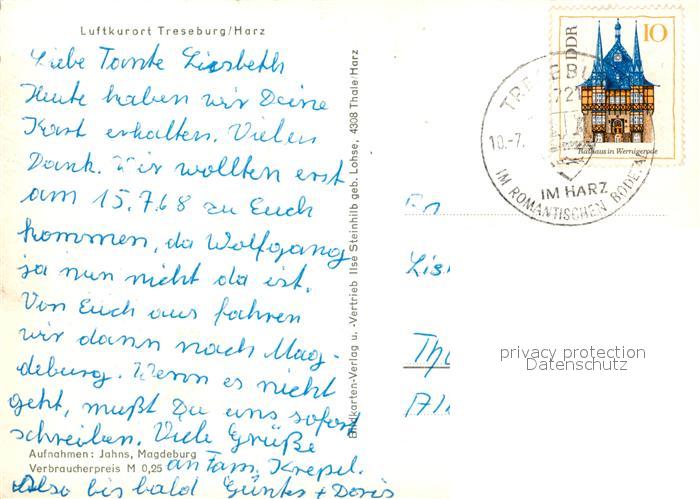 73100540 alte Postkarte Treseburg Harz Panorama postalisch gelaufen Erhaltung siehe scans [KathaD81] KatCode: 11110015085340