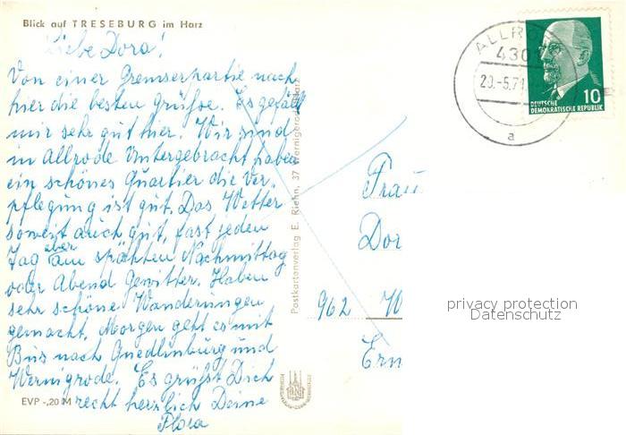 73094906 alte Postkarte Treseburg Harz Panorama postalisch gelaufen Erhaltung siehe scans [KathaD81] KatCode: 11110015085340