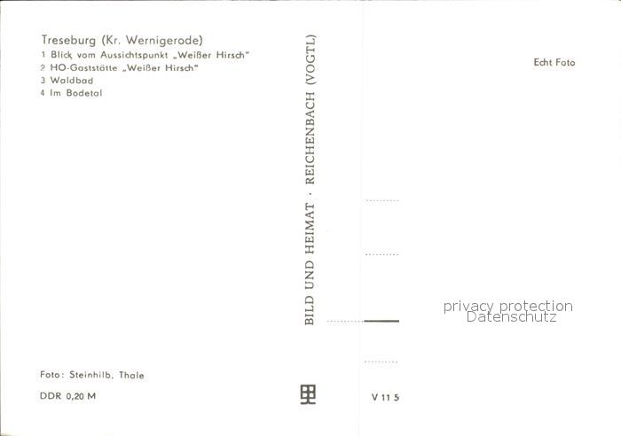 72405966 Treseburg Harz Weisser Hirsch Restaurant Waldbad Bodetal postalisch nicht gelaufen Erhaltung siehe scans KatCode: 11110015085340