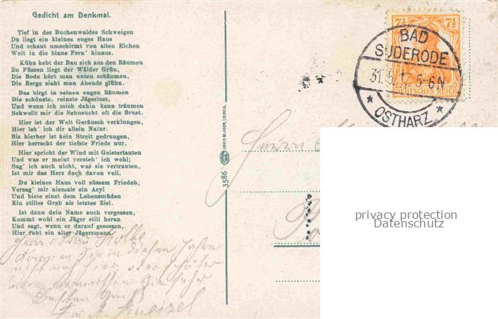74027959 alte Postkarte Treseburg Thale Harz Sachsen-Anhalt Dambachshaus Hirsch Denkmal postalisch gelaufen Erhaltung siehe scans [WerneD78] KatCode: 11110015085340