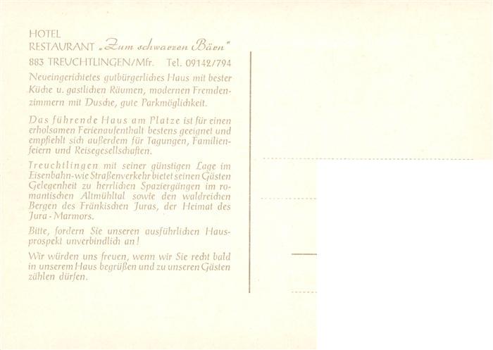 73947047 Treuchtlingen Hotel Restaurant Zum schwarzen Baeren postalisch nicht gelaufen Erhaltung siehe scans [FriedD77] KatCode: 11110009577173