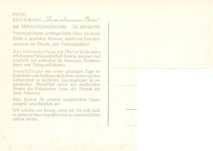 73946976 Treuchtlingen Hotel Zum schwarzen Baeren postalisch nicht gelaufen Erhaltung siehe scans [FriedD77] KatCode: 11110009577173