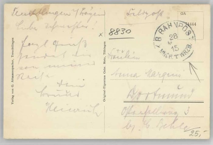 40250540 Treuchtlingen Patrikwald Feldpost x 1915 KatCode 11110009577173