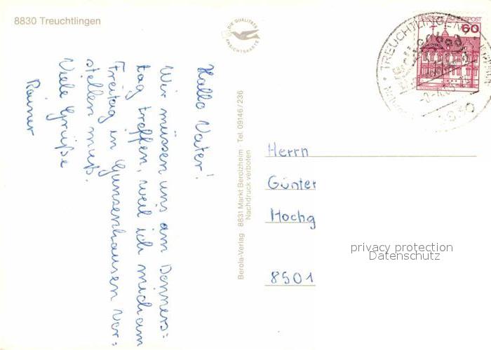 72906997 alte Postkarte Treuchtlingen Tor zum Altmuehltal Waldlehrpfad Sportzentrum postalisch gelaufen Erhaltung siehe scans [LiesaD40] KatCode: 11110009577173