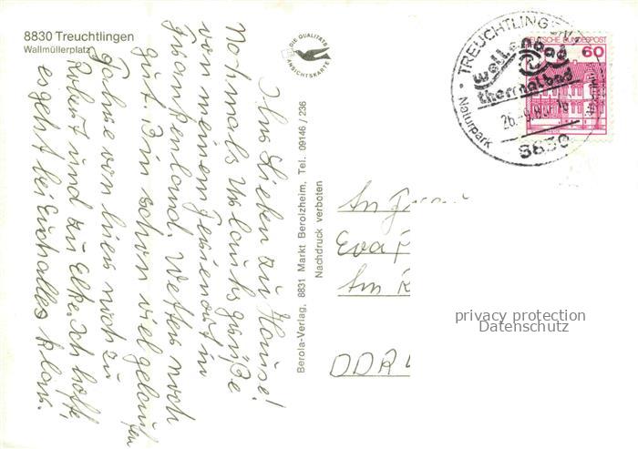 74142135 alte Postkarte Treuchtlingen Wallmuellerplatz postalisch gelaufen Erhaltung siehe scans [FriedD77] KatCode: 11110009577173