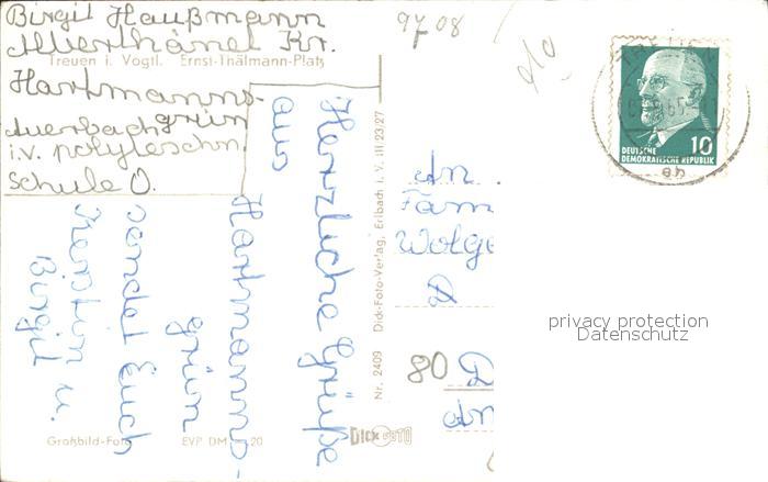 72136378 alte Postkarte Treuen Ernst Thaelmann Platz postalisch gelaufen KatCode: 11110014178680