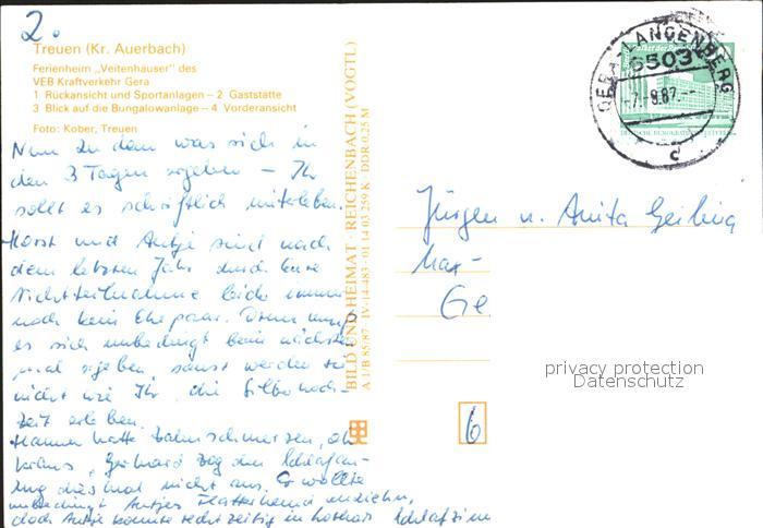 72250866 alte Postkarte Treuen Ferienheim Veitenhaeuser Sportanlagen Gaststaette Bungalows postalisch gelaufen Erhaltung siehe scans KatCode: 11110014178680