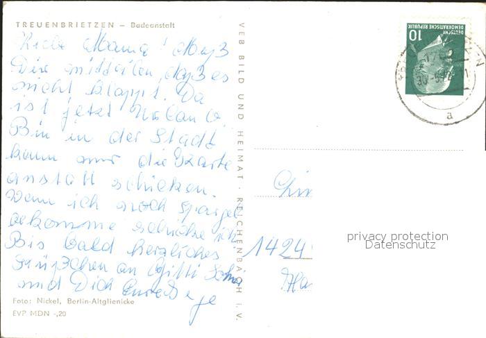 72072547 alte Postkarte Treuenbrietzen Badeanstalt Schwimmbad postalisch gelaufen Erhaltung siehe scans KatCode: 11110012069632