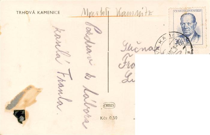 73958192 old postcard Trhova Kamenice CZ Teilansicht postalisch gelaufen Erhaltung siehe scans [FriedD77] KatCode: 11410