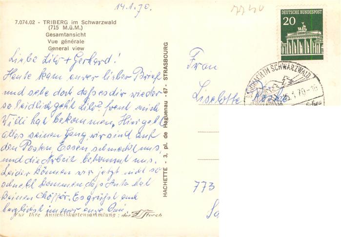 73927281 alte Postkarte Triberg Fliegeraufnahme postalisch gelaufen Erhaltung siehe scans [FriedD77] KatCode: 11110008326060