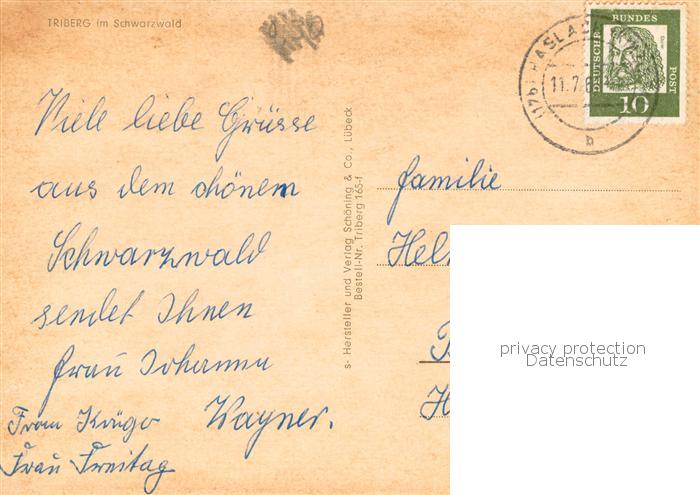 73813143 alte Postkarte Triberg Fliegeraufnahme postalisch gelaufen Erhaltung siehe scans [WerneD78] KatCode: 11110008326060