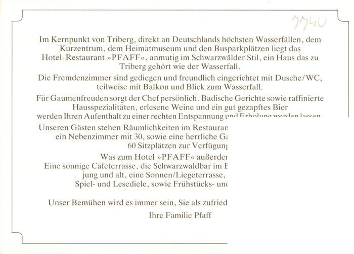 73927290 Triberg Hotel Pfaff Gastraeume Bar postalisch nicht gelaufen Werbekarte (keine Postkarte) Erhaltung siehe scans [FriedD77] KatCode: 11110008326060