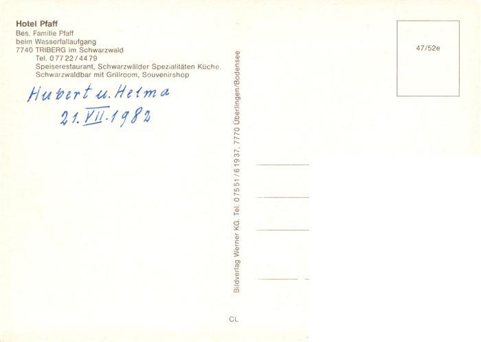73935349 Triberg Hotel Pfaff postalisch nicht gelaufen Erhaltung siehe scans [WerneD78] KatCode: 11110008326060