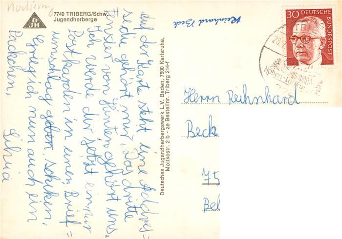73935355 alte Postkarte Triberg Jugendherberge Gaststube Treppenaufgang Wasserfall Ortspartie postalisch gelaufen Erhaltung siehe scans [WerneD78] KatCode: 11110008326060