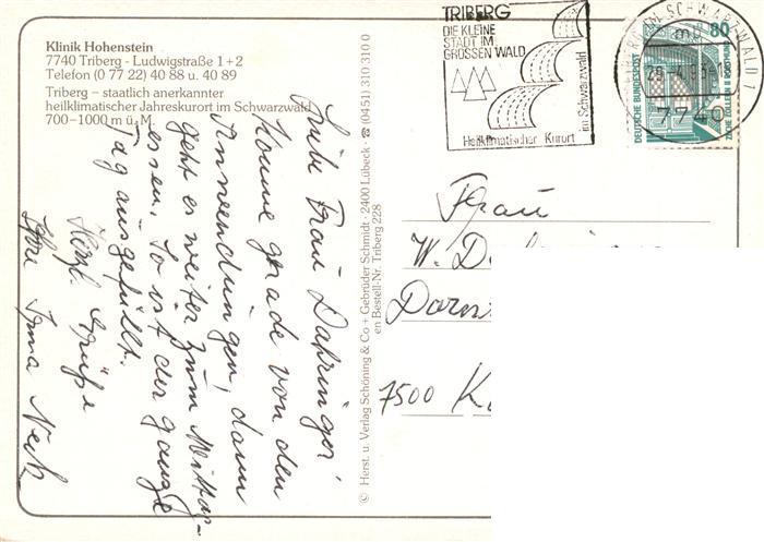73935352 alte Postkarte Triberg Klinik Hohenstein Foyer Gastraum Hallenbad postalisch gelaufen Erhaltung siehe scans [WerneD78] KatCode: 11110008326060