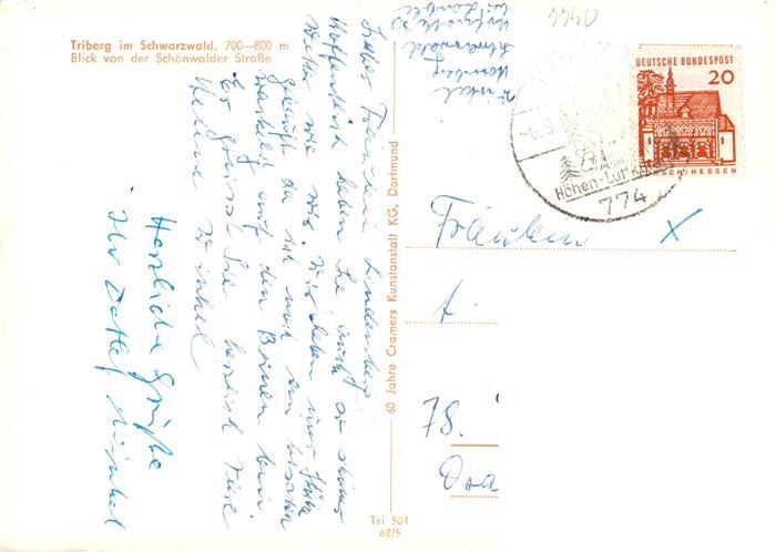 73927571 alte Postkarte Triberg Panorama Blick von der Schoenwalder Strasse postalisch gelaufen Erhaltung siehe scans [FriedD77] KatCode: 11110008326060