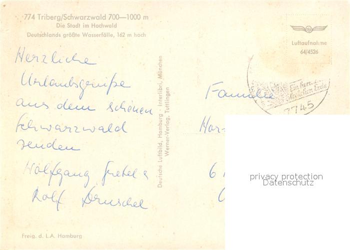 73217089 alte Postkarte Triberg Schwarzwald Fliegeraufnahme postalisch gelaufen Erhaltung siehe scans [KathaD81] KatCode: 11110008326060