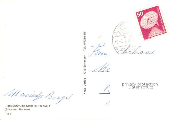 73048873 alte Postkarte Triberg Schwarzwald Fliegeraufnahme postalisch gelaufen Erhaltung siehe scans [KathaD81] KatCode: 11110008326060