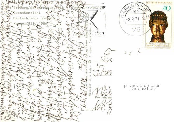 72772120 alte Postkarte Triberg Schwarzwald Fliegeraufnahme Wasserfaelle postalisch gelaufen Erhaltung siehe scans [LiesaD40] KatCode: 11110008326060