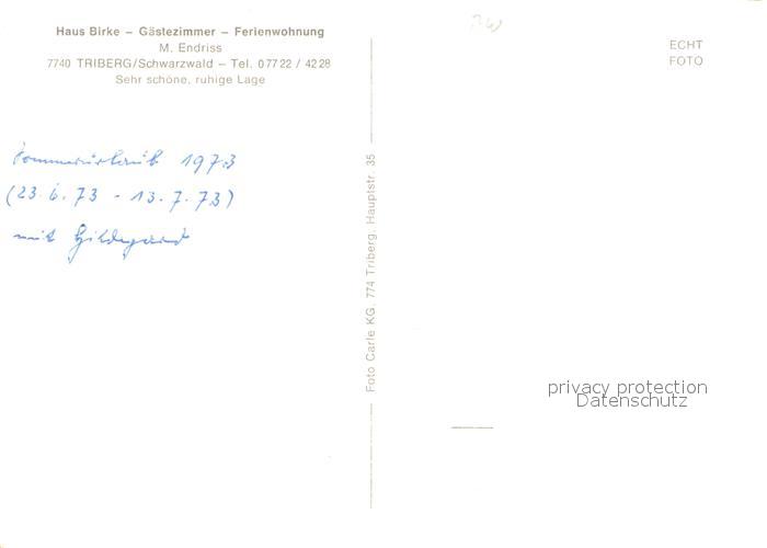 73654187 Triberg Schwarzwald Gaestehaus Pension Haus Birke Ferienwohnungen postalisch nicht gelaufen Erhaltung siehe scans [FriedD77] KatCode: 11110008326060