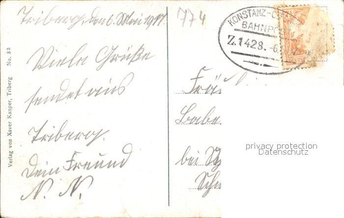 31841444 alte Postkarte Triberg Schwarzwald Gutachtal Bahnpost postalisch gelaufen Erhaltung siehe scans KatCode: 11110008326060