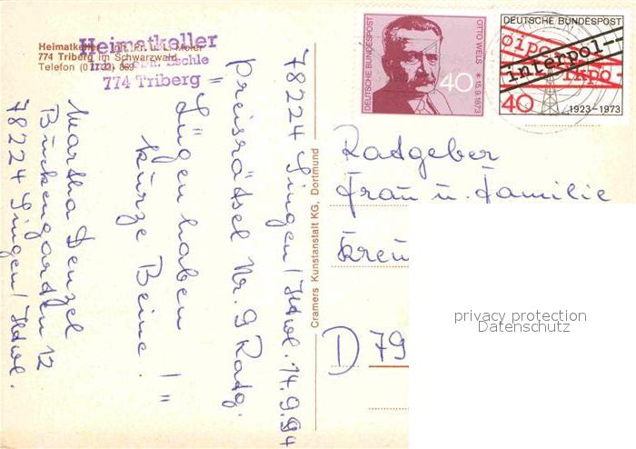 72673008 alte Postkarte Triberg Schwarzwald Heimatkeller postalisch gelaufen Erhaltung siehe scans [AndreD76] KatCode: 11110008326060