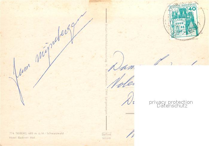 72928661 alte Postkarte Triberg Schwarzwald Hotel Badener Hof postalisch gelaufen Erhaltung siehe scans [WerneD78] KatCode: 11110008326060