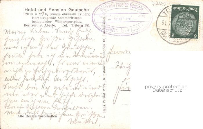 31884620 alte Postkarte Triberg Schwarzwald Hotel-Pension Geutsche postalisch gelaufen Erhaltung siehe scans KatCode: 11110008326060
