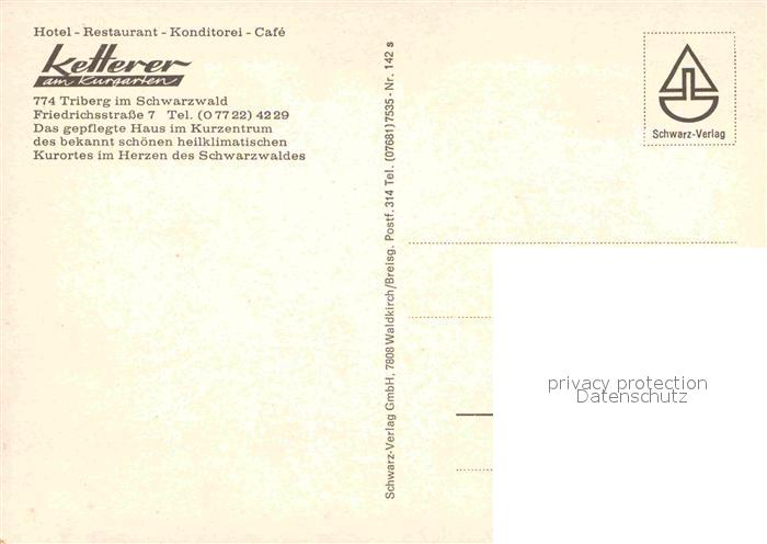 72893314 Triberg Schwarzwald Hotel Restaurant Ketterer postalisch nicht gelaufen Erhaltung siehe scans [AndreD76] KatCode: 11110008326060