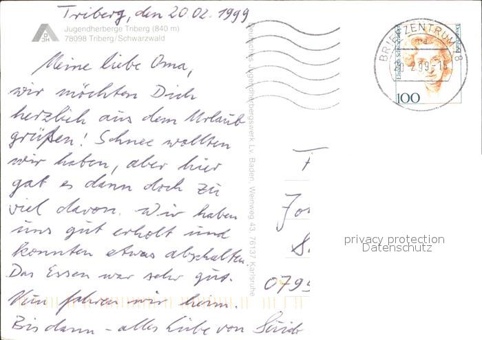 72071478 alte Postkarte Triberg Schwarzwald Jugendherberge postalisch gelaufen Erhaltung siehe scans KatCode: 11110008326060