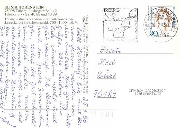 72872312 alte Postkarte Triberg Schwarzwald Klinik Hohenstein Wasserfall postalisch gelaufen Erhaltung siehe scans [FriedD77] KatCode: 11110008326060
