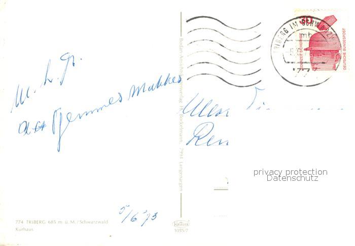 73311754 alte Postkarte Triberg Schwarzwald Kurhaus postalisch gelaufen Erhaltung siehe scans [LiesaD40] KatCode: 11110008326060