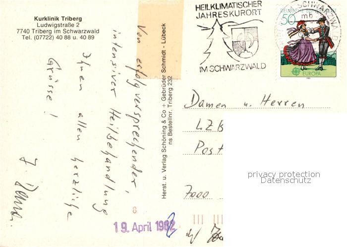 72947423 alte Postkarte Triberg Schwarzwald Kurklinik Triberg Speisesaal Hallenbad TV Raum postalisch gelaufen Erhaltung siehe scans [WerneD78] KatCode: 11110008326060