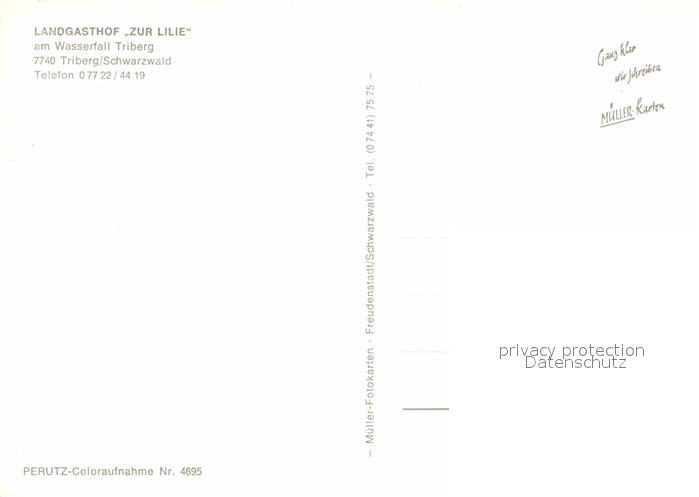 72915087 Triberg Schwarzwald Landgasthof Zur Lilie Wasserfall postalisch nicht gelaufen Erhaltung siehe scans [LiesaD40] KatCode: 11110008326060