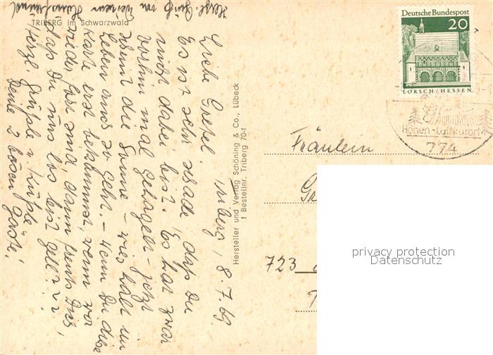 73549950 alte Postkarte Triberg Schwarzwald Panorama postalisch gelaufen Erhaltung siehe scans [WerneD78] KatCode: 11110008326060