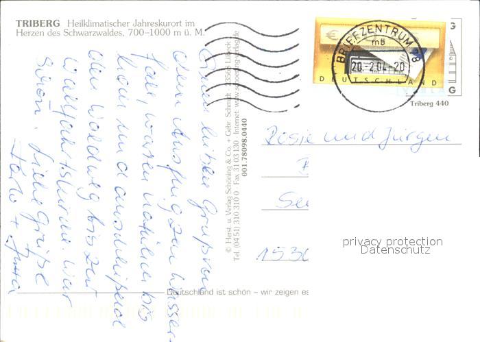 72361389 alte Postkarte Triberg Schwarzwald Rathaus Wallfahrtskirche Marktplatz postalisch gelaufen Erhaltung siehe scans KatCode: 11110008326060