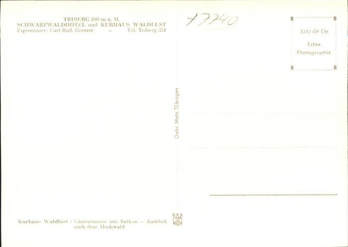 41200851 Triberg Schwarzwald Schwarzwald Hotel Kurhaus Waldlust KatCode 11110008326060