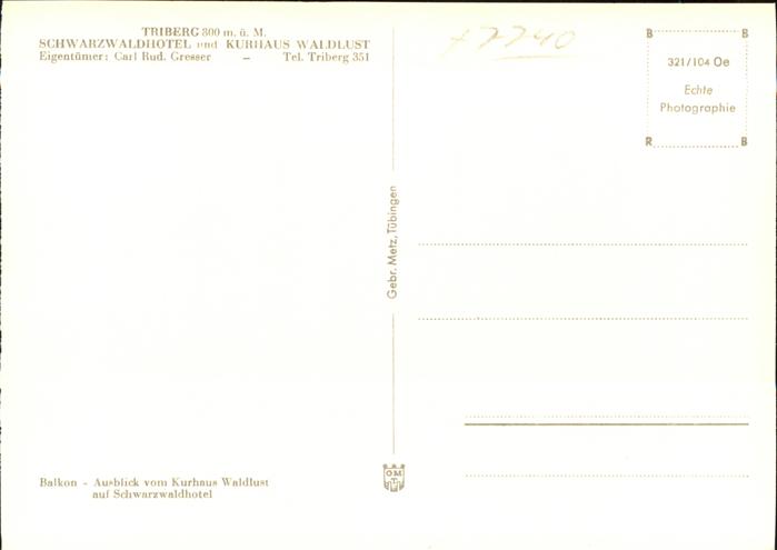 41200848 Triberg Schwarzwald Schwarzwald Hotel Kurhaus Waldlust KatCode 11110008326060