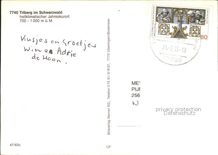 72523781 alte Postkarte Triberg Schwarzwald Stadtansicht postalisch gelaufen Erhaltung siehe scans KatCode: 11110008326060
