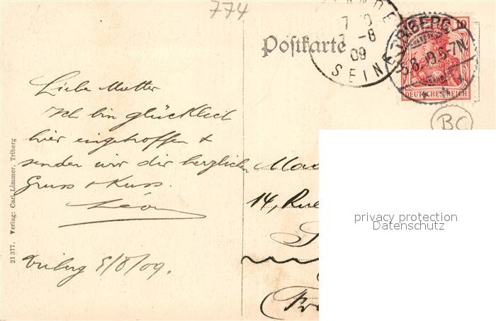 43253619 alte Postkarte Triberg Schwarzwald Teilansicht postalisch gelaufen Erhaltung siehe scans [FriedD77] KatCode: 11110008326060