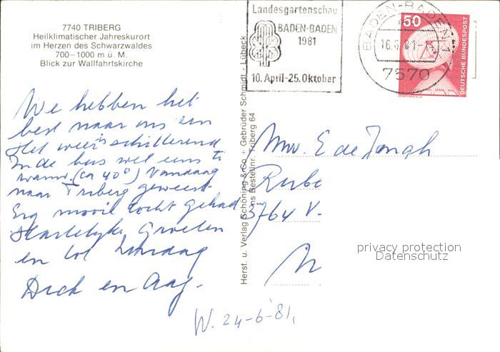72223437 alte Postkarte Triberg Schwarzwald Wallfahrtskirche postalisch gelaufen Erhaltung siehe scans KatCode: 11110008326060