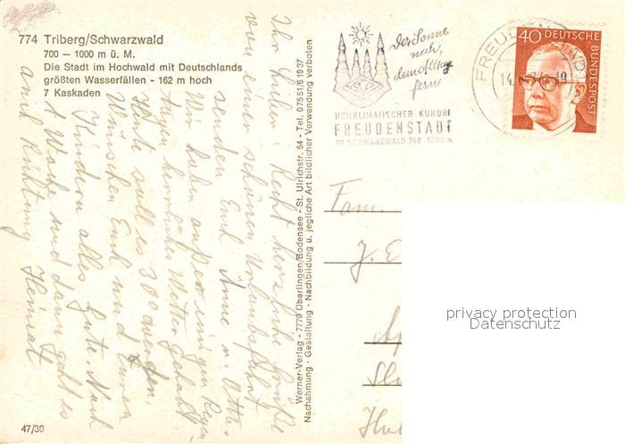 72861911 alte Postkarte Triberg Schwarzwald Wasserfaelle Stadthalle postalisch gelaufen Erhaltung siehe scans [WerneD78] KatCode: 11110008326060