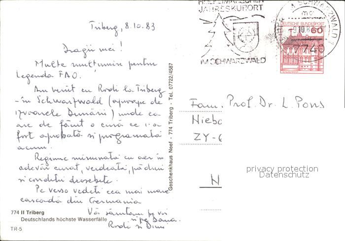 72255270 alte Postkarte Triberg Schwarzwald Wasserfall postalisch gelaufen Erhaltung siehe scans KatCode: 11110008326060