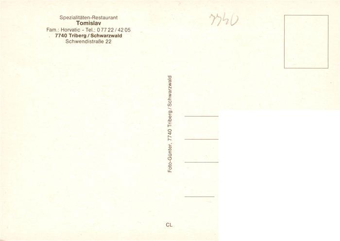 73935365 Triberg Spezialitaeten Restaurant Tomislav Gastraeume Bar Kegelbahn postalisch nicht gelaufen Erhaltung siehe scans [WerneD78] KatCode: 11110008326060