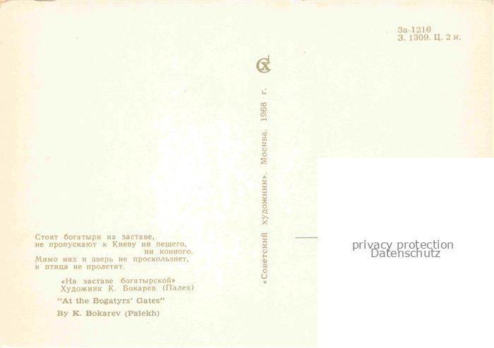 74041978 trickfilm zeichentrickfilm Kino Film Cinema Cine At the Bogatyrs Gates K. Bokarev postalisch nicht gelaufen Erhaltung siehe scans [IrynaD87] KatCode: 22560000001500