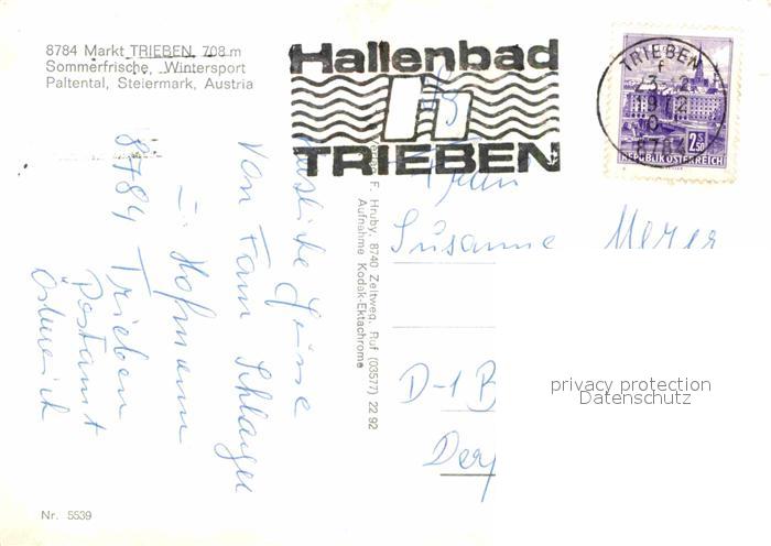 72674676 alte Postkarte Trieben Teilansichten Hallenbad postalisch gelaufen Erhaltung siehe scans [WerneD78] KatCode: 11390222061247